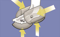 После сканирования микрокомпьютером точек приложения массажа, ролики выставляются математически точно по поверхности воротниковой зоны, они аккуратно захватывают плечевой сустав, сжимают и растягивают ткани точно также как это делается пальцами. Улучшить циркуляцию крови помогает также специально разработанная для этой области техника Супер постукивания и разминания в трапециевидной мышце.